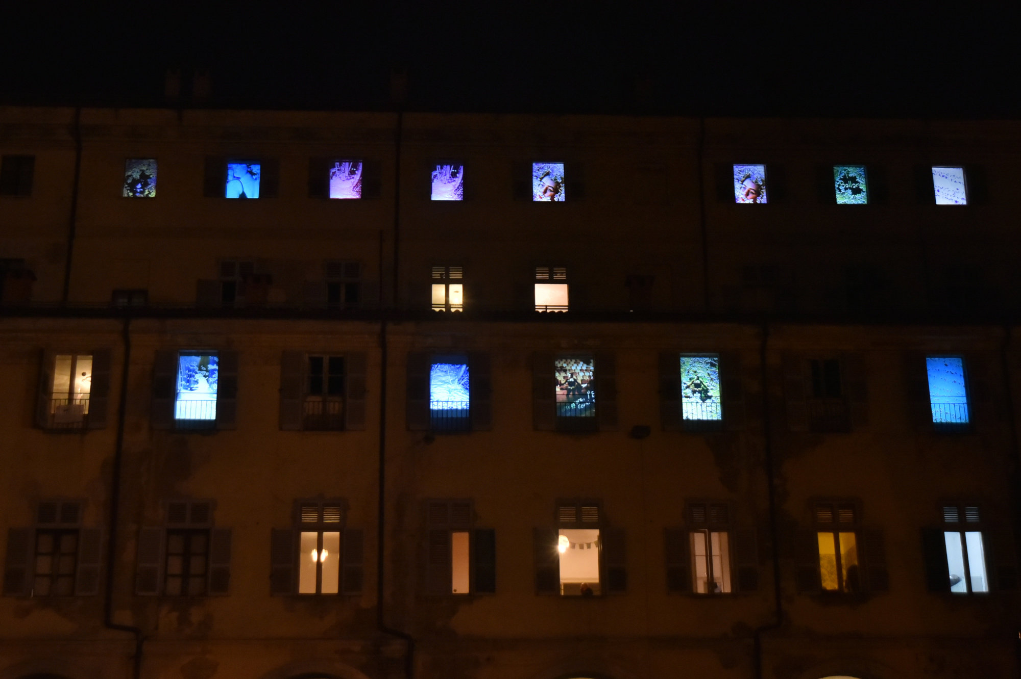 Nell'oscillazione tra luce e tenebra, chiaro e scuro, bianco e nero vi è un'alternanza di equilibrio e di armonia che genera il colore. Queste alternanze di colori e di chiariscuri sono lo spunto per un incontro con gli artisti del collettivo artivisive della Cavallerizza Reale. Tutte le sere quattordici finestre della Cavallerizza Reale saranno illuminate da un coro di immagini degli artisti del collettivo artivisive. Durante tutto il periodo di Communitas i video verranno aggiornati periodicamente con altre immagini elaborate live nello spazio dei fannidada in Cavallerizza.